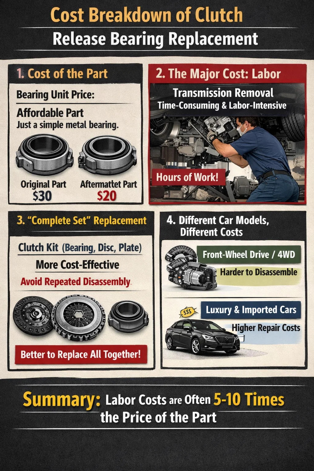Precio unitario del rodamiento: si miramos el rodamiento del embrague en sí, en realidad no es caro. Es sólo un cojinete de anillo de metal, una pieza consumible normal.