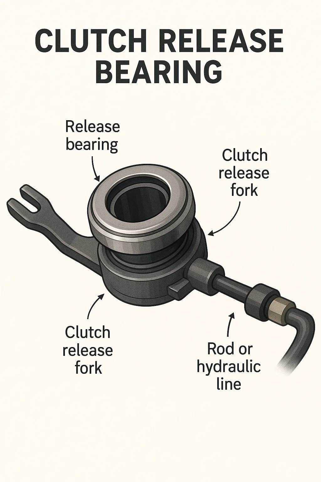 el cojinete de desembrague , también llamado cojinete de desembrague, es parte del sistema de embrague. Su tarea principal es ayudar a separar el plato del embrague y el plato de presión cuando el conductor presiona el pedal del embrague. Esto desconecta el motor de la transmisión, lo que permite al conductor cambiar de marcha fácilmente sin provocar que el automóvil se sacuda o se cale.