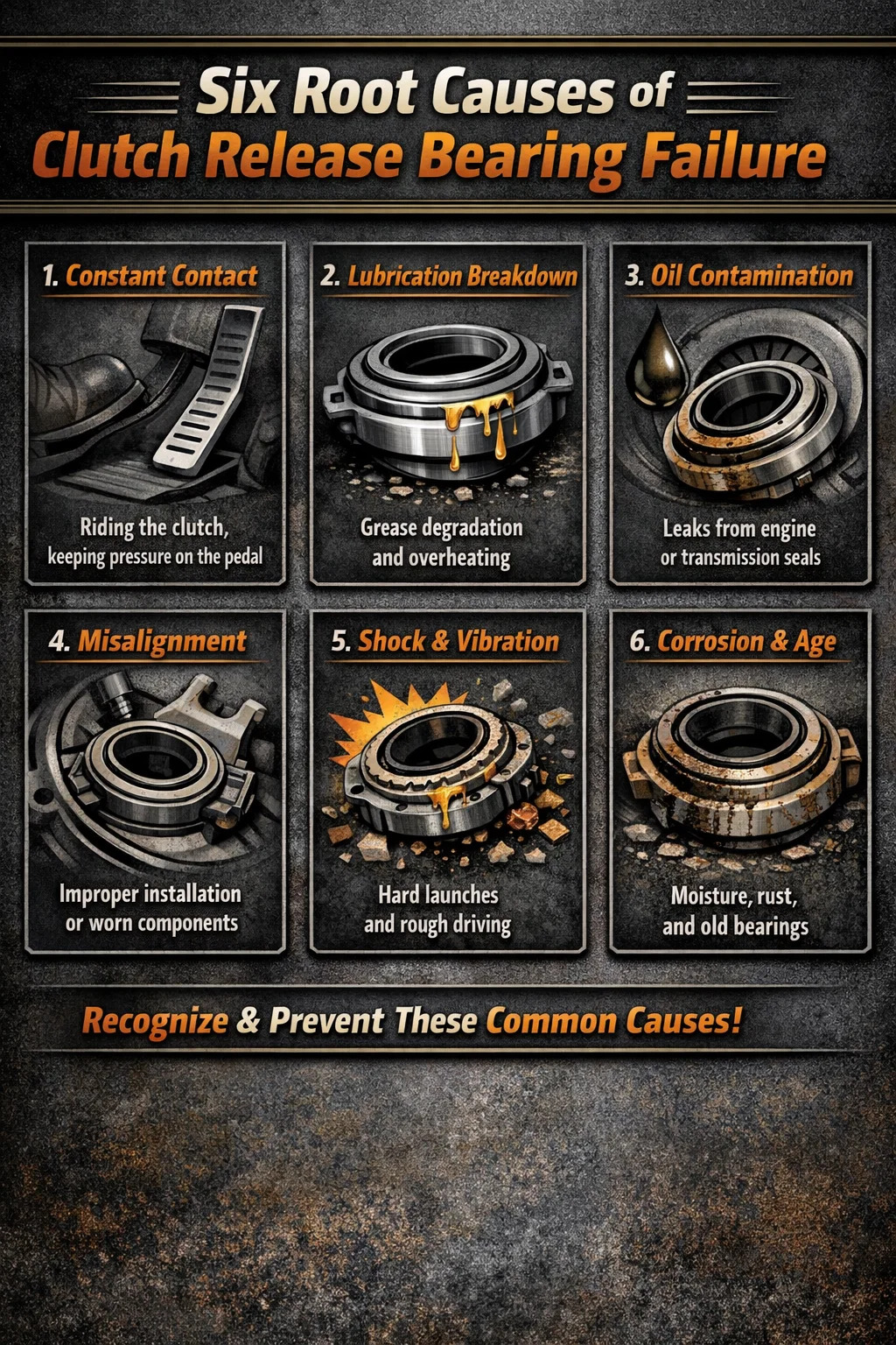 Comprender exactamente qué causa esa degradación no es sólo académico. Informa directamente cómo elegir un reemplazo. cojinete de liberación , cómo instalarlo correctamente y qué hábitos de conducción cambiar para evitar que se repita el mismo fallo.